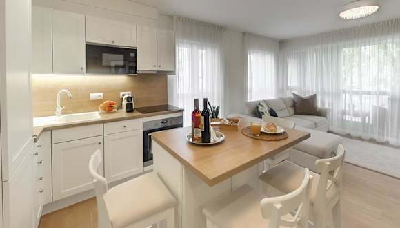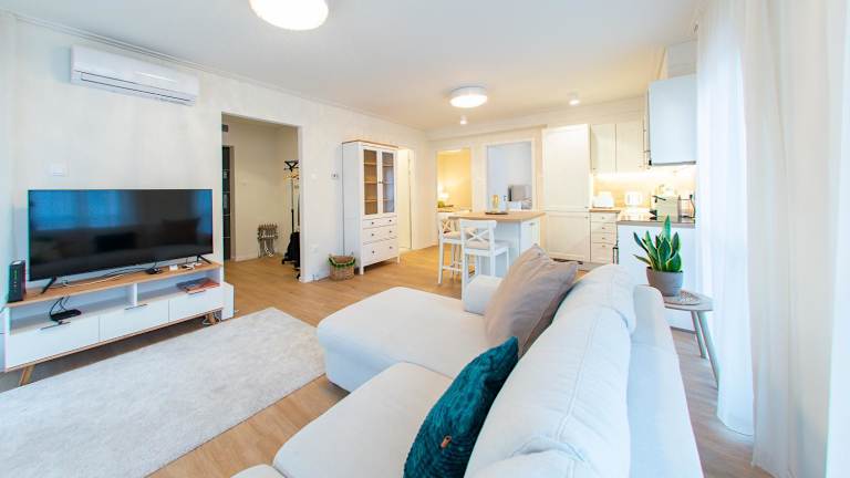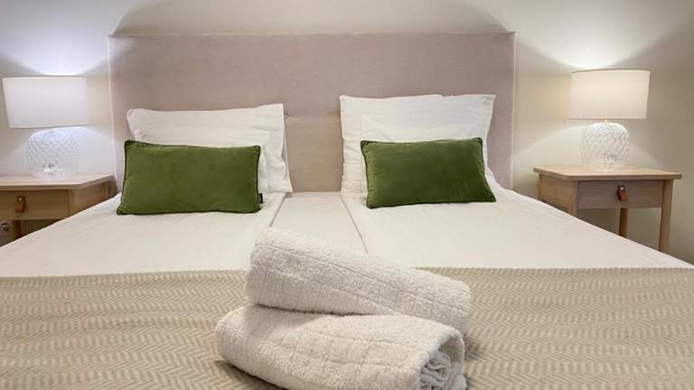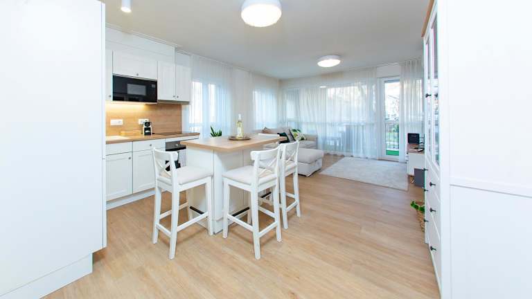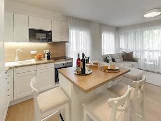 Die Ferienwohnung besteht aus zwei Schlafzimmern, einem Wohnzimmer sowie einer voll ausgestatteten Küche, die über einen Kühlschrank und eine Kaffeemaschine verfügt. Ein Badezimmer mit Dusche und Haartrockner ist ebenfalls vorhanden. Handtücher und Bettwäsche werden bereitgestellt.