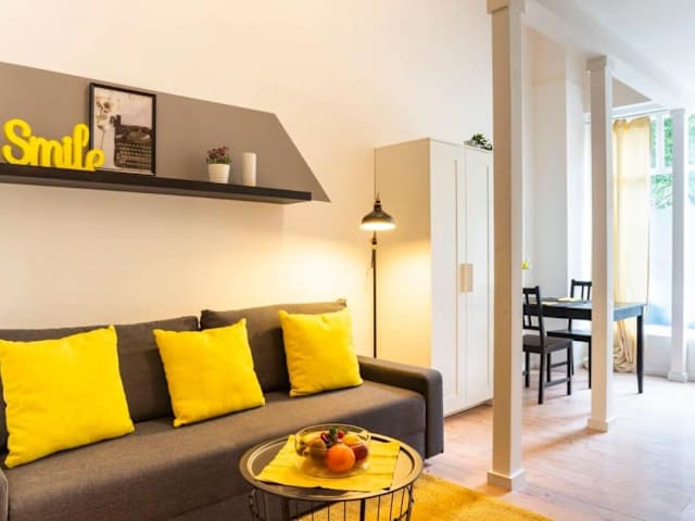 Das Cosy loft style Apartment in Berlin Wilmersdorf bietet Übernachtungsmöglichkeiten mit modernen Annehmlichkeiten wie kostenlosem Wifi und einem TV. Der Check-in erfolgt digital und ist ab 16:00 Uhr möglich, während der Check-out bis 10:00 Uhr gestaltet ist. Rauchen ist in der gesamten Unterkunft nicht gestattet.