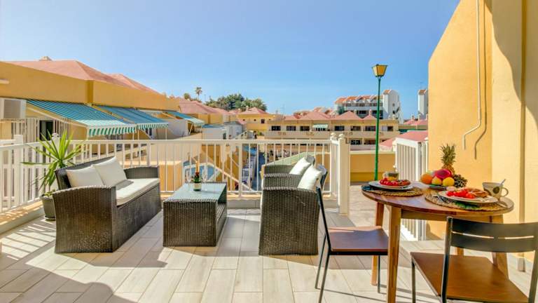 Die Unterkunft umfasst 1 Schlafzimmer sowie ein Badezimmer mit Dusche, Haartrockner und Waschmaschine. Die Wohnung bietet zusätzlich eine Terrasse und Zugang zu einem Aussenpool.