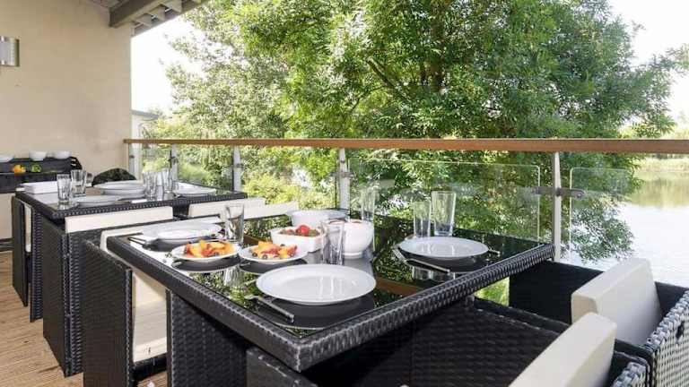Die Cotswolds Lake side home ist ein luxuriöses Ferienhaus mit einem eigenen Spa. Es bietet zahlreiche Annehmlichkeiten wie eine Terrasse, eine Bar und eine Gartenlandschaft. Die Unterkunft eignet sich ideal für entspannte Ferien mit Familie oder Freunden.