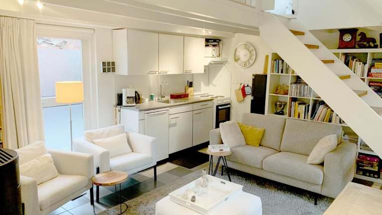 Cottage Markdal met gratis fietsen bietet Übernachtungsmöglichkeiten mit einem Garten und einer Terrasse. Diese Ferienwohnung ist in einem Gebäude aus dem Jahr 1910 untergebracht und fasst zwei Schlafzimmer, ein Wohnzimmer, eine voll ausgestattete Küche mit Kühlschrank und Kaffeemaschine sowie ein Badezimmer mit Dusche.