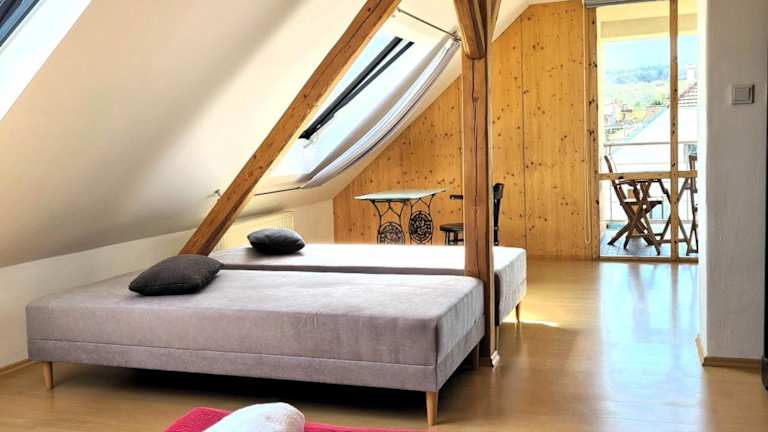 Die Ferienwohnung besteht aus 3 Schlafzimmern, einem Wohnzimmer und einer voll ausgestatteten Küche mit Kühlschrank und Kaffeemaschine. Ein Badezimmer mit Dusche und Haartrockner ist ebenfalls vorhanden. Handtücher und Bettwäsche werden bereitgestellt. Des Weiteren sind schallisolierte Zimmer, Nichtraucherzimmer und Familienzimmer verfügbar. Ein Bezug auf eine Terrasse vervollständigt das Angebot.