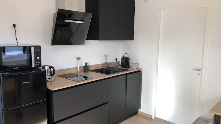 Die Wohneinheiten sind mit einer voll ausgestatteten Küche ausgestattet, die einen Kühlschrank, einen Geschirrspüler, einen Ofen, eine Mikrowelle, eine Herdplatte, eine Kaffeemaschine und einen Wasserkocher umfasst. Ein eigenes Badezimmer mit Dusche und kostenlosen Pflegeprodukten ist ebenfalls vorhanden.