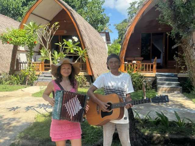 Nette Unterkunft auf GIli Meno. Die Bungalows sind recht einfach, man hat aber alles was man braucht. AC macht Sinn, da sich die Hitze tagsüber sehr staut. Großes Bad mit Heißwasser. Die Besitzer sind sehr nett und geben viele Tips wo man auf der Insel gut und günstig essen kann, wo man am besten den Sonnenuntergang anschaut und vieles mehr. Die Unterkunft liegt nicht direkt am Strand, aber da die insel so klein ist, gar kein Problem.