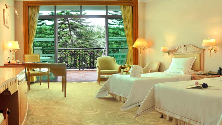Die 201 Zimmer des Resorts sind komfortabel und gemütlich eingerichtet und bieten Annehmlichkeiten wie einen Kühlschrank und eine Minibar. Jedes Zimmer verfügt über einen eigenen Balkon, von dem aus Sie die schöne Umgebung genießen können. Kostenlose Kabel- und WLAN-Internetverbindungen stehen zur Verfügung, sowie ein eigenes Badezimmer mit separater Badewanne und Dusche.