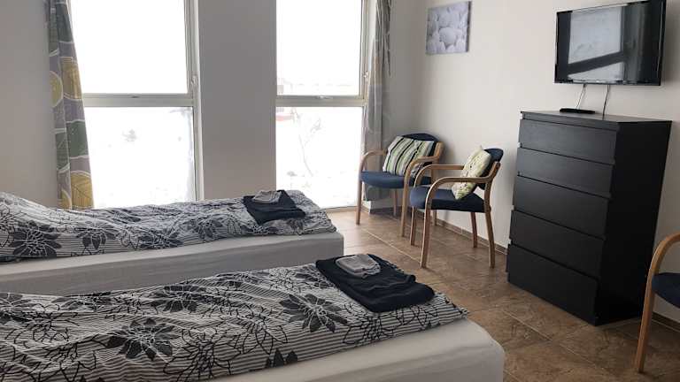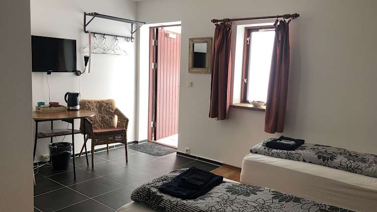 Die hellen und einfachen Zimmer des Country Hotels Heydalur sind mit einem eigenen Bad ausgestattet und betreten sich von aussen. Es stehen Familienzimmer zur Verfügung.