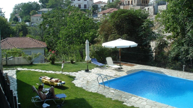 Das Guesthouse Triantafyllies in Portaria bietet seinen Gästen eine freundliche Atmosphäre, komfortable Zimmer und einen entspannenden Außenpool. Das hilfsbereite Personal an der Rezeption steht Ihnen bei allen Fragen zur Verfügung und sorgt dafür, dass Ihr Aufenthalt angenehm und erholsam ist. Das Hotel liegt in der Nähe des Zentrums von Portaria und bietet einen Parkplatz für Gäste, die mit dem Auto anreisen. Genießen Sie die Ruhe und Entspannung im Garten oder nutzen Sie das WLAN, um mit dem Internet verbunden zu bleiben. Die Zimmer sind gemütlich eingerichtet und verfügen über eine Heizung, ein Doppelbett und eine Kochnische, in der Sie kleine Mahlzeiten zubereiten können. Ein TV-Gerät und WLAN sind ebenfalls vorhanden. Das Badezimmer ist mit einer Dusche und einem Haartrockner ausgestattet. Starten Sie Ihren Tag mit einem leckeren und nahrhaften Frühstück im Frühstückssaal.