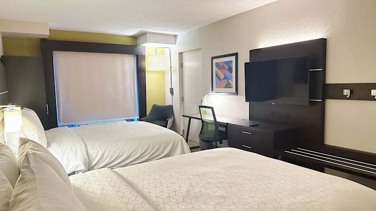 Die Zimmer sind komfortabel mit Teppichboden ausgestattet und verfügen über eine Klimaanlage sowie eine Heizung. Jedes Zimmer bietet ein Queensizebett und ein Sofabett, dazu können Zustellbetten angefordert werden. Zu den Annehmlichkeiten zählen ein Safe, ein Schreibtisch, sowie ein Kühlschrank und eine Mikrowelle. Ein Bad mit Dusche, Haartrockner und Pflegeprodukten sorgt für zusätzlichen Komfort. Wifi ist in den Zimmern kostenfrei verfügbar, und es stehen sowohl Nichtraucher- als auch Raucherzimmer zur Verfügung. Rollstuhlgerechte Zimmer sind ebenfalls buchbar.