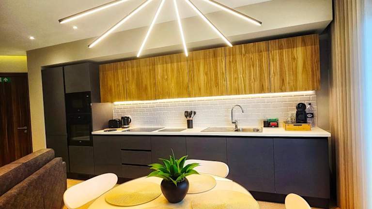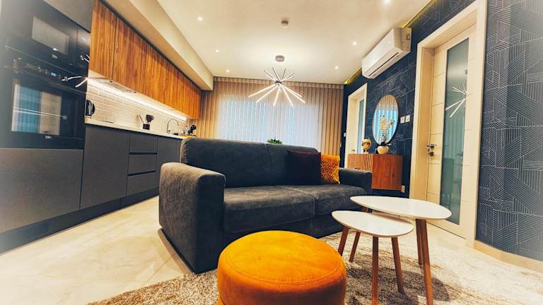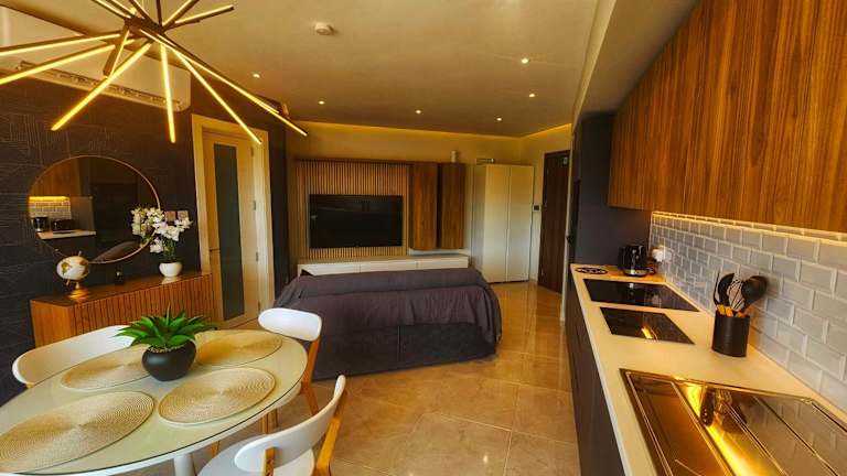 Die Ferienwohnung umfasst ein Schlafzimmer, ein Wohnzimmer und eine voll ausgestattete Küche mit Kühlschrank und Kaffeemaschine. Des Weiteren sind ein Badezimmer mit Dusche und kostenlosen Pflegeprodukten sowie Handtücher und Bettwäsche vorhanden. Eine Klimaanlage sorgt für Bequemlichkeit.