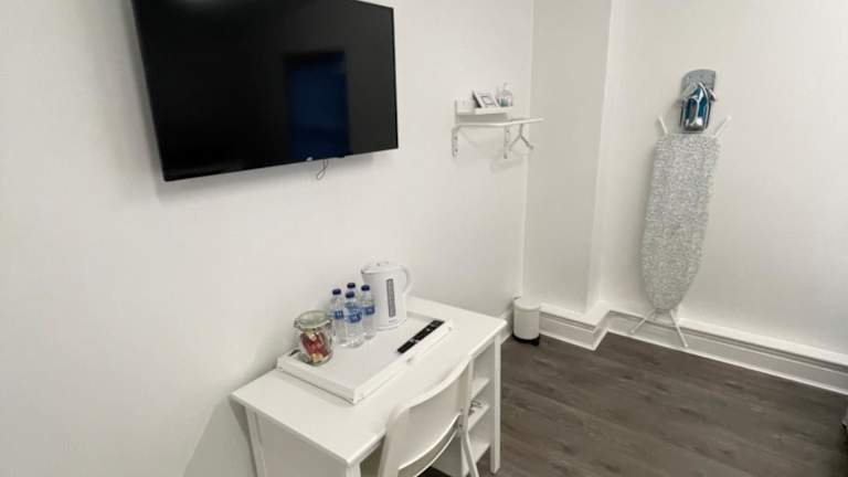 Jedes Zimmer in der Unterkunft ist ausgestattet mit einem Schreibtisch, einem Flachbild-TV, einem Gemeinschaftsbad sowie Bettwäsche und Handtüchern.