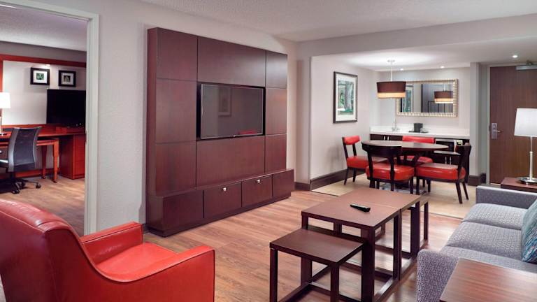 Die Zimmer sind mit Klimaanlage und Heizung ausgestattet. Es stehen verschiedene Bettoptionen zur Verfügung, wie Doppelbett, Queensize-Bett, Kingsize-Bett oder Sofabett. Die Zimmer haben einen Safe, eine Minibar, einen Kühlschrank und eine Mikrowelle. Bademäntel, Kosmetikartikel und eine Auswahl an Handtüchern sind ebenfalls vorhanden. Zudem sind rollstuhlgerechte Zimmer mit barrierefreiem Badezimmer buchbar.