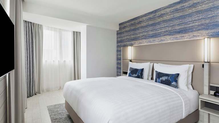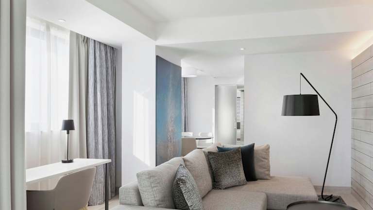 Die Zimmer bieten einen schönen Meerblick und verfügen über ein Doppelbett sowie ein Sofabett. Zustellbetten sind auf Anfrage erhältlich. Zur Ausstattung der Zimmer gehören eine Minibar, Klimaanlage, Sat-TV und kostenfreies Wifi. Die Badezimmer sind mit einer Dusche und einem Haartrockner ausgestattet. Es sind auch rollstuhlgerechte Zimmer verfügbar.