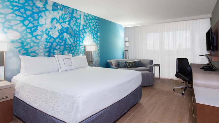 Die Zimmer im Courtyard by Marriott Bonaire verfügen über eine moderne Ausstattung mit einem Schreibtisch, einem Flachbild-TV und einem eigenen Bad. Viele Wohneinheiten bieten Seeblick. Alle Zimmer sind klimatisiert, mit einem Wasserkocher und einem Kleiderschrank ausgestattet.