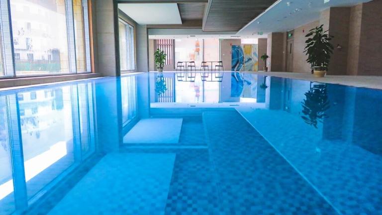 Das Hotel bietet einen Fitnessraum, in dem Gäste ihre Trainingsroutine fortsetzen können. Auch ein beheizter Innenpool steht zur Verfügung.