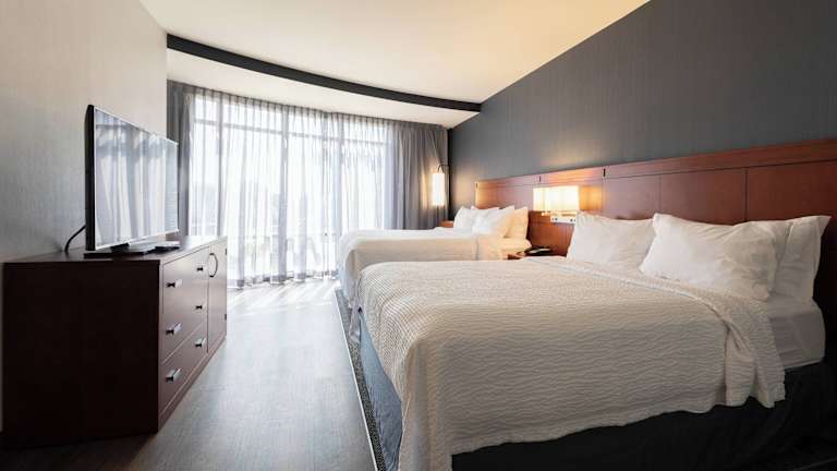 Die Zimmer sind mit Klimaanlage, Heizung, Queensizebett und Sofabett ausgestattet. Zusätzlich sind eine Minibar, Kühlschrank, Mikrowelle und eine Tee-/Kaffeemaschine vorhanden. Ein Fernseher, Telefon, Wecker und kostenfreies WLAN sind ebenfalls Teil der Zimmerausstattung. Die Badezimmer verfügen über eine Dusche, Haartrockner und Telefon. Rollstuhlgerechte Zimmer sind verfügbar.