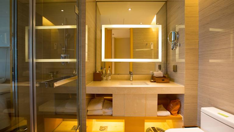 Die Zimmer sind hell und modern eingerichtet, verfügen über raumhohe Fenster und sind mit Teppichböden ausgestattet. Sie bieten ein Doppelbett, Queensize- oder Kingsize-Bett, einen Safe, eine Minibar, einen Schreibtisch sowie einen Kühlschrank, eine Mikrowelle und Kaffee-/Teekocher. Jedes Zimmer ist mit einem 32-Zoll-Flachbild-TV mit internationalen Kanälen und kostenfreiem Wifi ausgestattet. Die Badezimmer sind elegant mit einer Dusche sowie einer Badewanne ausgestattet und bieten kostenlose Pflegeprodukte sowie weich Bademäntel.