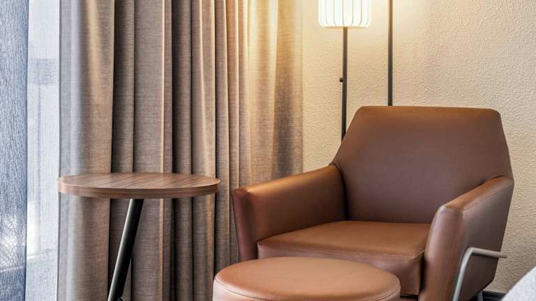 Die Zimmer sind mit einer Klimaanlage, Heizung, einem Doppelbett und einem Sofabett ausgestattet, wobei Zustellbetten angefragt werden können. Zu den weiteren Annehmlichkeiten gehören eine Minibar, ein Kühlschrank, eine Mikrowelle, eine Tee-/Kaffeemaschine und ein Schreibtisch. Die Badezimmer sind mit einer Dusche, Haartrockner und Kosmetikartikeln ausgestattet. Die Unterkunft bietet zudem Nichtraucherzimmer und rollstuhlgerechte Zimmer mit barrierefreiem Badezimmer an.