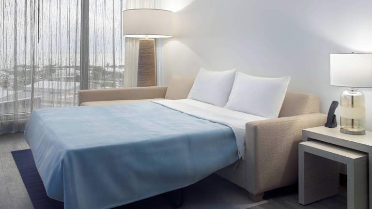 Die Zimmer bieten Klimaanlage, individuell steuerbare Heizung sowie Balkon oder Terrasse mit Blick auf die Bucht. Ausgestattet mit Teppichboden verfügen sie über ein Doppelbett und ein Sofabett, wobei Zustellbetten ebenfalls angefordert werden können. Zur Standardausstattung gehören Safe, Schreibtisch, Tee-/Kaffeemaschine, Telefon mit Direktwahl, TV-Gerät mit Satelliten-/Kabelempfang, Radio, und WiFi (ohne Gebühr). Im Badezimmer sind Dusche und Badewanne vorhanden, ebenso ein Haartrockner und Bademäntel sowie Kosmetikartikel. Es stehen auch rollstuhlgerechte Zimmer zur Verfügung. Alle Unterkünfte sind Nichtraucherzimmer.