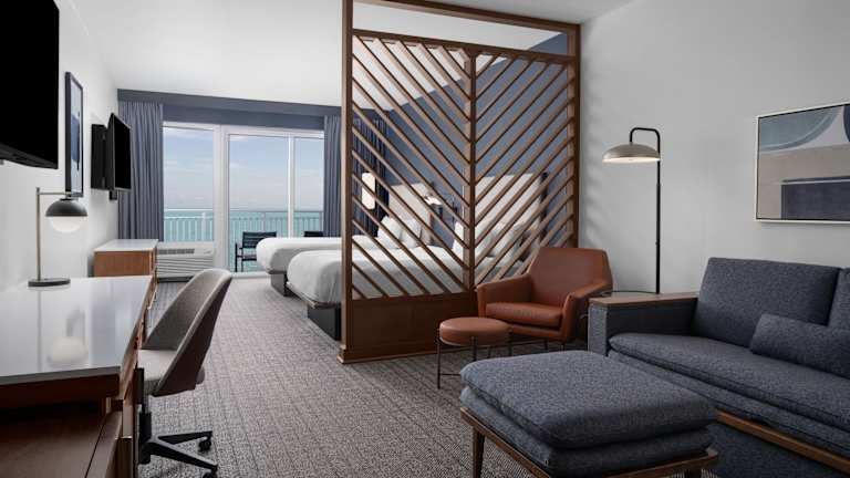 Die klimatisierten Zimmer bieten einen schönen Meerblick und sind mit einem Doppelbett und einem Sofabett ausgestattet. Zustellbetten können angefordert werden. Jedes Zimmer verfügt über einen Schreibtisch, eine Kaffeemaschine, einen Kühlschrank, eine Mikrowelle, einen Safe, einen Flachbild-TV, einen Balkon sowie ein eigenes Badezimmer mit Dusche, Haartrockner und Telefon. Eine Auswahl an Nichtraucher- und Raucherzimmern ist verfügbar.