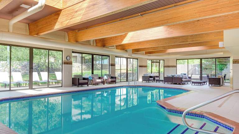 Der Poolbereich bietet einen beheizten Innen- und Aussenpool sowie eine Sonnenterrasse mit Liegestühlen. Für die Freizeitgestaltung stehen verschiedene Optionen wie ein Fitnessraum und ein Wellnessbereich zur Verfügung. Zudem gibt es ein umfassendes Angebot an Sportmöglichkeiten wie Aerobic und Gymnastik.