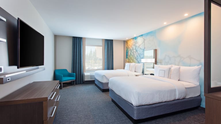 Die Zimmer sind mit Klimaanlage und Heizung ausgestattet und verfügen über ein Doppelbett, Queensize-Bett, Kingsize-Bett oder Sofabett. Zur Einrichtung gehören ein Schreibtisch, Kühlschrank, Mikrowelle sowie eine Tee-/Kaffeemaschine. Die Badezimmer sind mit Dusche und Badewanne ausgestattet und bieten kostenlos Pflegeprodukte. Zudem sind rollstuhlgerechte Zimmer buchbar, die barrierefreie Badezimmer haben. In den Zimmern sind auch Telefon, TV-Gerät, Radio, Wecker und kostenfreies Wifi (ohne Gebühr) vorhanden.