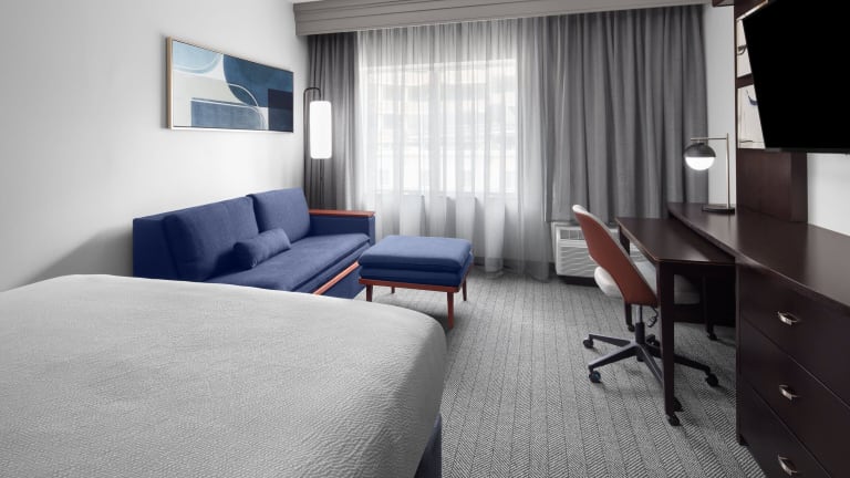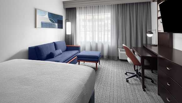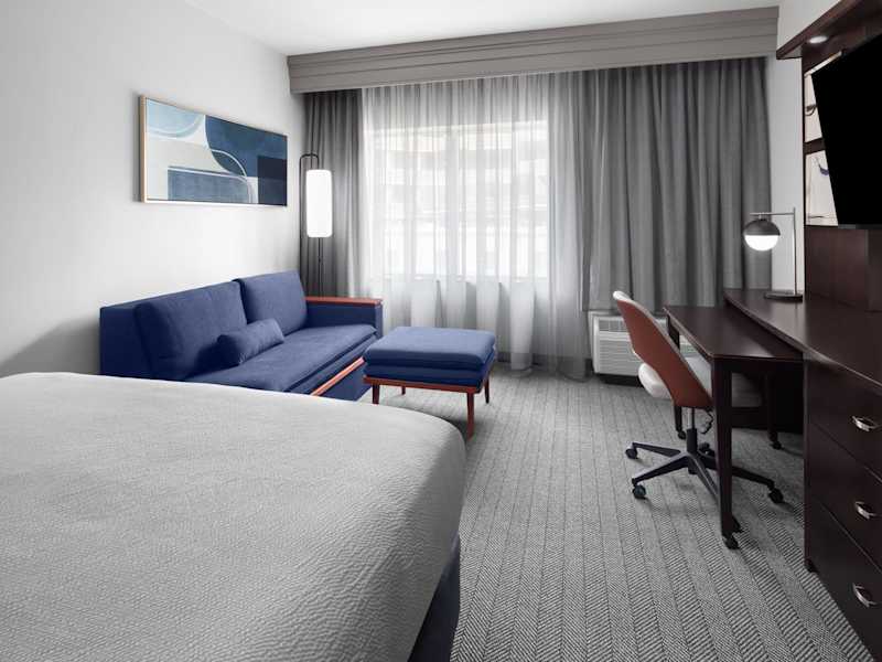 Das kürzlich renovierte Hotel Courtyard Cleveland University Circle bietet insgesamt 153 Zimmer und ist mit einem Aufzug ausgestattet. Die Rezeption ist 24 Stunden besetzt und das freundliche Personal steht für alle Anfragen zur Verfügung. Die Einrichtung umfasst einen Safe, eine Gepäckaufbewahrung, einen Geldautomaten sowie einen Getränkeautomaten. Die Gäste profitieren von kostenlosem WLAN im gesamten Hotel und können Ausflüge über den Tourdesk buchen. Es stehen behindertengerechte Annehmlichkeiten und rollstuhlgerechte Einrichtungen zur Verfügung. Bei Anreise mit dem Auto gibt es die Möglichkeit, in einer Garage oder auf dem Parkplatz zu parkieren. Zu den weiteren Leistungen zählen Babysitterservice, Zimmerservice, Wäscheservice, Münzwäscherei und ein eigener Shuttlebus.