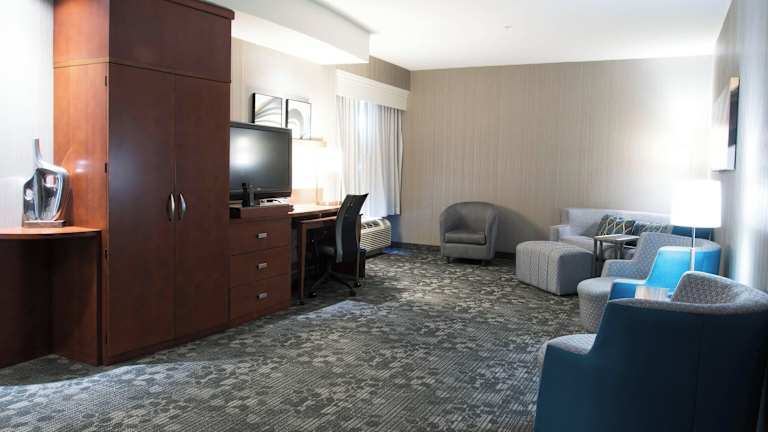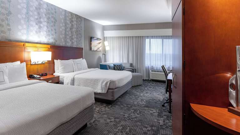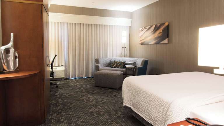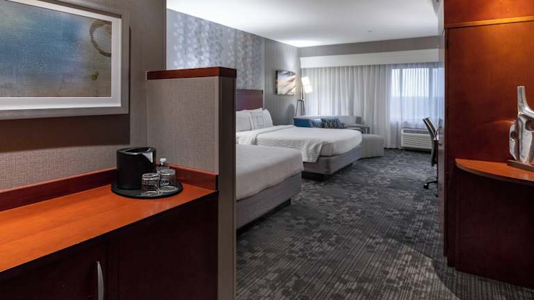 Die Zimmer sind ausgestattet mit Klimaanlage, Heizung, einem Kingsizebett und einem Sofabett. Zusätzliche Annehmlichkeiten umfassen einen Safe, eine Minibar, einen Schreibtisch sowie einen Kühlschrank, Mikrowelle und eine Tee-/Kaffeemaschine. Im Badezimmer befinden sich eine Dusche, ein Haartrockner und Bademäntel. Die Unterkunft bietet auch rollstuhlgerechte Zimmer mit barrierefreiem Badezimmer an.