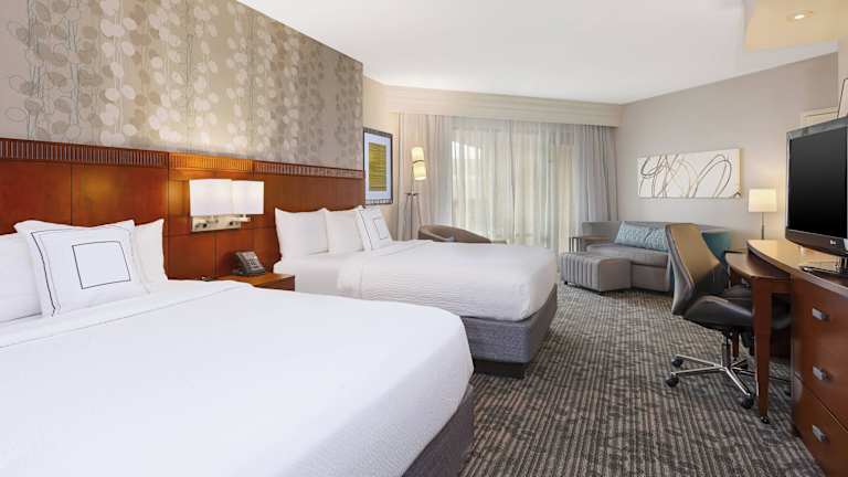 Die Zimmer sind klimatisiert und bieten einen Balkon oder eine Terrasse. Zur Ausstattung gehören ein Schreibtisch, ein Safe, eine Minibar, eine Mikrowelle und ein Kühlschrank. Ein komfortables Badezimmer mit Dusche, Föhn und Bademänteln ist ebenfalls vorhanden. Zudem sind rollstuhlgerechte Zimmer buchbar.