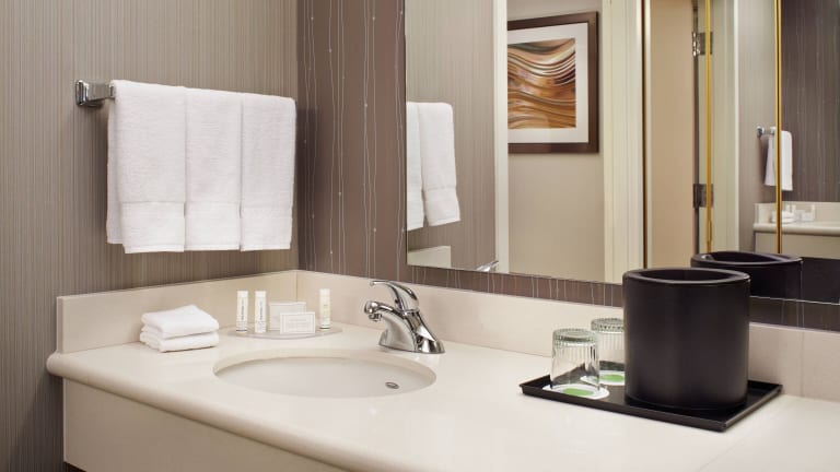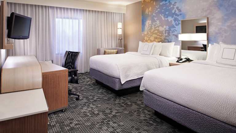Die Zimmer sind mit Klimaanlage, einem Queensize- oder Kingsize-Bett sowie einem Schreibtisch ausgestattet. Zudem stehen ein Minikühlschrank, eine Mikrowelle, Kaffee-/Teezubereiter und ein Flachbildfernseher zur Verfügung. In den Badezimmern sind Haartrockner und weitere Annehmlichkeiten vorhanden. Das Hotel bietet auch rollstuhlgerechte und familienfreundliche Zimmer.