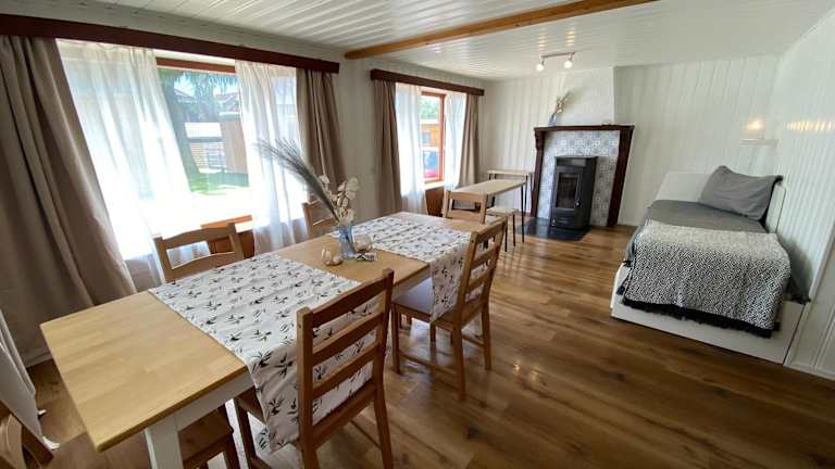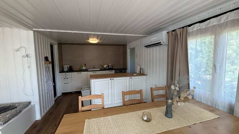 Dieser Bungalow besteht aus zwei Schlafzimmern und einem Badezimmer mit Dusche und Haartrockner. Zudem sind eine voll ausgestattete Küche mit Kühlschrank und Kaffeemaschine sowie Handtücher und Bettwäsche inbegriffen. Haustiere sind erlaubt, und für Familien stehen geeignete Zimmer zur Verfügung.