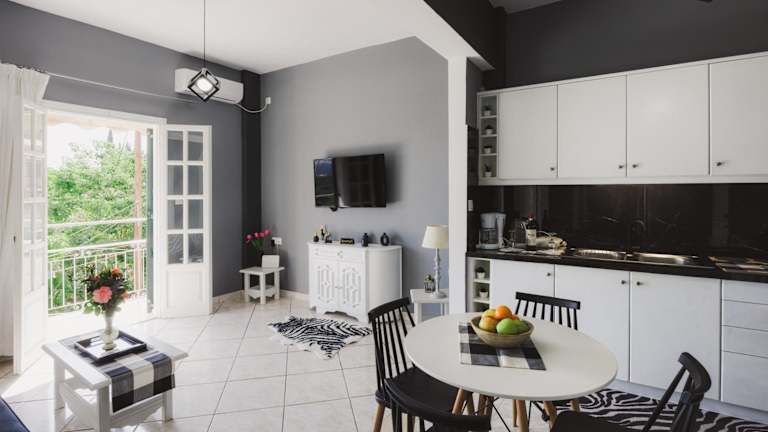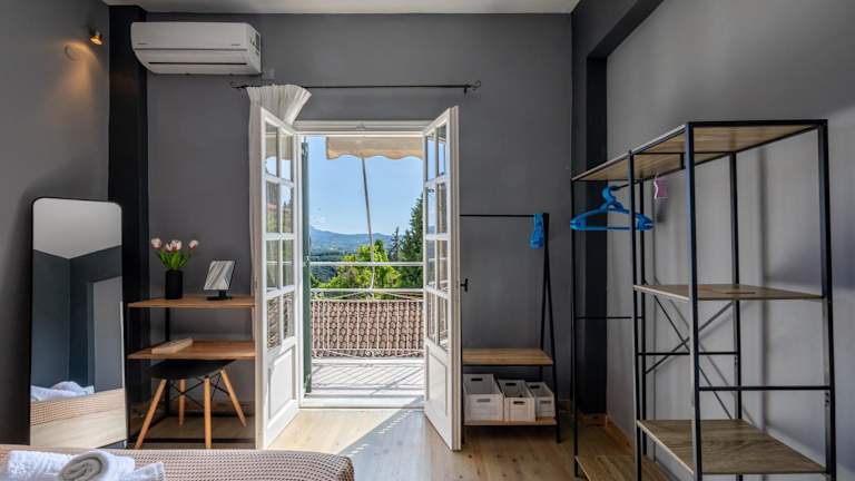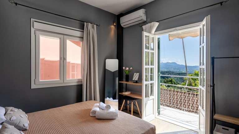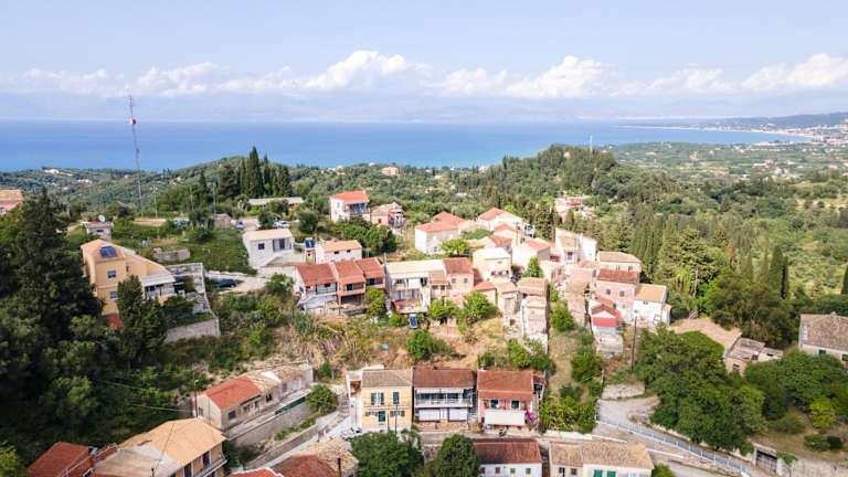 Die Unterkunft liegt auf einem Hügel und bietet einen schönen Bergblick. Der Strand Astrakeri ist etwa 2,5 km entfernt, und der Strand Gialos liegt in einer Entfernung von ungefähr 2 km. Der Hafen von Korfu ist 32 km entfernt, während der Flughafen Korfu in einer Distanz von 33 km zu finden ist.