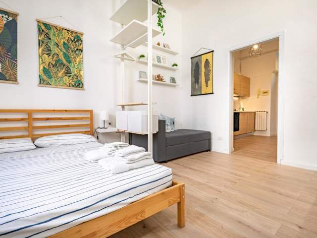 Die Ferienwohnung verfügt über ein Schlafzimmer und ein Badezimmer, das mit einem Bidet, einer Dusche und kostenlosen Pflegeprodukten ausgestattet ist. Die Küche ist mit einem Kühlschrank, einem Ofen, einer Mikrowelle, einer Kaffeemaschine und einem Wasserkocher eingerichtet. Die klimatisierte Unterkunft sorgt für eine angenehme Bequemlichkeit während des Aufenthalts.