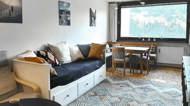 Die Ferienwohnung Cozy apartment w a view & own garden überzeugt durch eine gemütliche Atmosphäre und eine eigene Veranda bzw. einen Patio. Die Gäste können im heimeligen Garten entspannen und die Bergsicht geniessen.