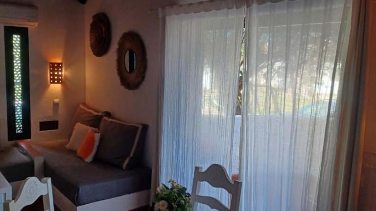 Das Ferienhaus ist klimatisiert und besteht aus einem Schlafzimmer, einem Wohnzimmer sowie einem Essbereich. Die Küchenzeile ist mit einem Kühlschrank ausgestattet. Zur Unterhaltung stehen ein Flachbild-TV und die kostenlose Nutzung von Wifi zur Verfügung. Handtücher und Bettwäsche werden zur Verfügung gestellt.