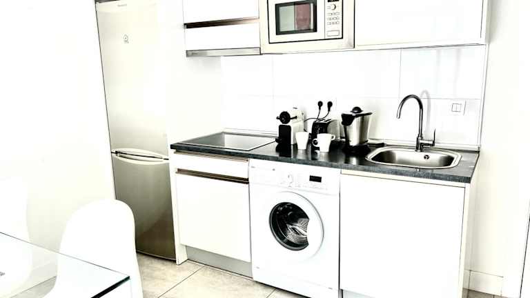 Die Ferienwohnung verfügt über ein Schlafzimmer, ein Wohnzimmer mit einem Flachbild-TV und eine gut ausgestattete Küche mit Kühlschrank und Geschirrspüler. Weiterhin gibt es ein Badezimmer mit Dusche. Handtücher und Bettwäsche werden zur Verfügung gestellt.