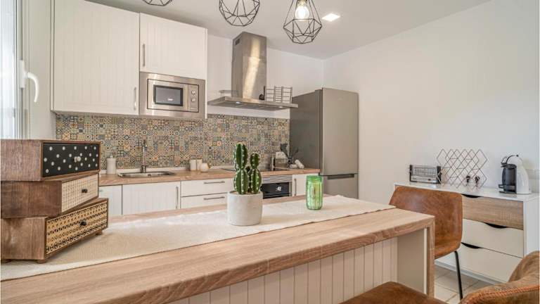 Das Ferienhaus verfügt über zwei Schlafzimmer, eine Klimaanlage, einen TV, einen Essbereich sowie eine gut ausgestattete Küche mit Kühlschrank und Geschirrspüler. Internet und moderne Annehmlichkeiten sind in der Unterkunft vorhanden.