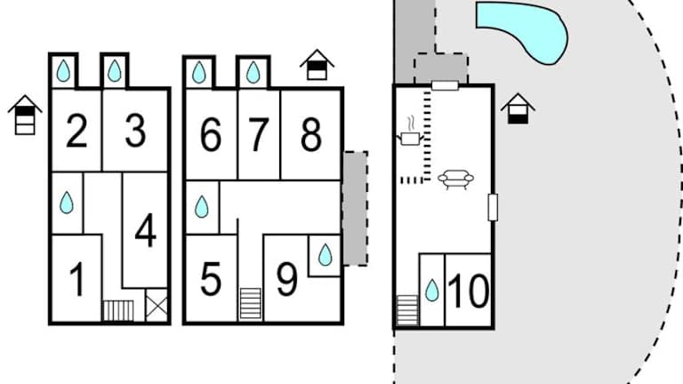 Das Ferienhaus bietet 9 Schlafzimmer, ein Wohnzimmer und 9 Badezimmer, die mit einer Dusche und einer Badewanne ausgestattet sind. Eine voll ausgestattete Küche mit Kühlschrank und Kaffeemaschine ist ebenfalls vorhanden.