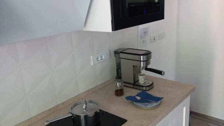 Die Ferienwohnung umfasst ein Schlafzimmer, ein Wohnzimmer und eine voll ausgestattete Küchenzeile mit Kühlschrank und Kaffeemaschine. Ein Badezimmer mit Bidet und Dusche ist ebenfalls vorhanden. Handtücher und Bettwäsche werden bereitgestellt. Die Unterkunft ist klimatisiert und bietet Nichtraucherzimmer.