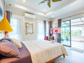 Cozy House in Hua Hin, Thailand, bietet Übernachtungsmöglichkeiten mit kostenlosem WLAN und Klimaanlage. Die Unterkunft ist von einem Garten umgeben und verfügt über einen Außenpool sowie einen Balkon mit Gartenblick.