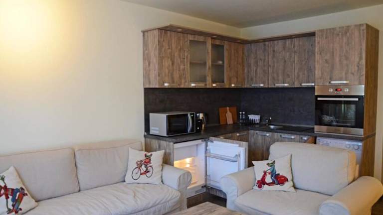 Die Unterkunft Cozy One Bedroom Apartment in Iglika Complex bietet eine Ferienwohnung mit einer einladenden Terrasse und herrlichem Bergblick. Es steht kostenloses Wifi zur Verfügung.
