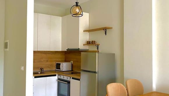 Die Ferienwohnung besteht aus einem Schlafzimmer und einem Wohnzimmer. Sie verfügt über eine voll ausgestattete Küche mit Kühlschrank und Wasserkocher sowie ein Badezimmer mit Bidet und Dusche. Zusätzlich gibt es einen Flachbild-TV mit Satellitenkanälen und Klimaanlage.
