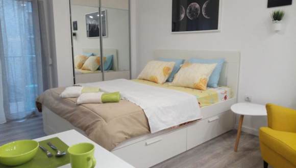 Die Ferienwohnung verfügt über 1 Schlafzimmer, 1 Badezimmer, Bettwäsche, Handtücher, einen Flachbild-TV, einen Essbereich, eine voll ausgestattete Küche und einen Balkon mit Stadtblick. Allergikerfreundliche Zimmer stehen zur Verfügung. Es gibt schallisolierte Zimmer, und die Unterkunft bietet Familienzimmer sowie eine Möglichkeit zur Autovermietung.