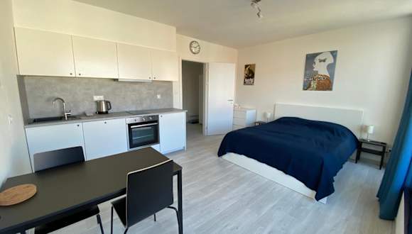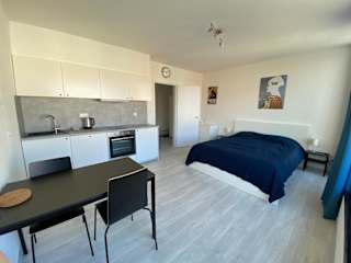 Die Ferienwohnung verfügt über ein Schlafzimmer, einen Flachbild-TV und eine Küche, die den Gästen alle notwendigen Annehmlichkeiten für einen angenehmen Aufenthalt bietet.