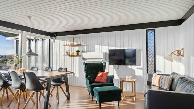 Die Unterkunft befindet sich in Rønde, nur 400 m vom Strand Følle entfernt, umgeben von Natur und mit Meerblick. Der Strand von Rosenholm Bådelaug liegt 2,7 km entfernt und der Flughafen Aarhus ist 12 km entfernt.