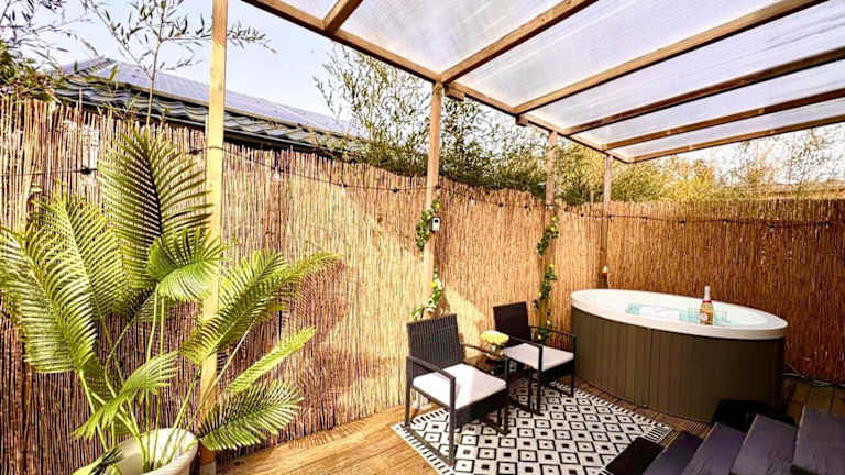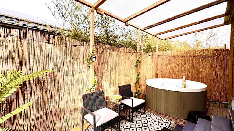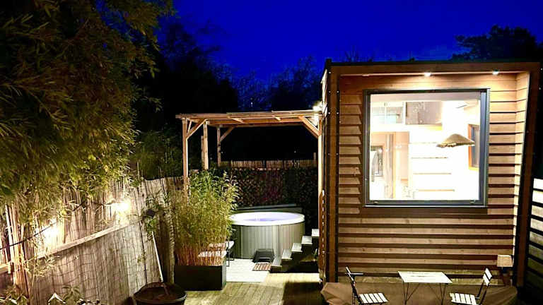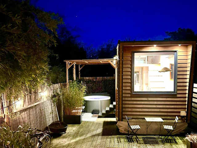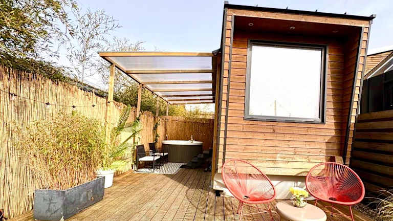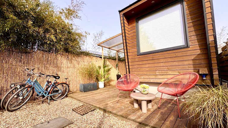 Das Cozy tiny house with jacuzzi, garden and free parking near Amsterdam bietet Übernachtungsmöglichkeiten in einem heimeligen Chalet. Es handelt sich um eine privat geführte Unterkunft, die Gästen ein geschlossenes, ruhiges Ambiente mit einem eigenen Garten und einer Terrasse zur Verfügung stellt.