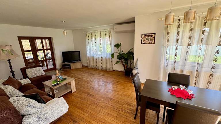 Cozy Villa with a Beautiful View, Terrace and Nature bietet Übernachtungsmöglichkeiten mit einer Terrasse und Blick auf die Berge. Die Villa ist klimatisiert und beinhaltet 3 Schlafzimmer, ein Wohnzimmer sowie eine voll ausgestattete Küche.