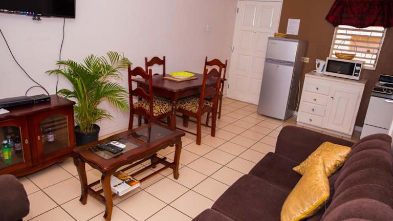 Einige Wohneinheiten sind mit einer Küche ausgestattet, die über einen Kühlschrank, einen Ofen und eine Mikrowelle verfügt.