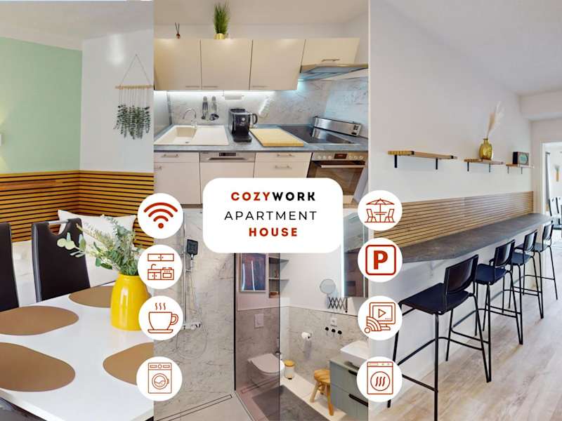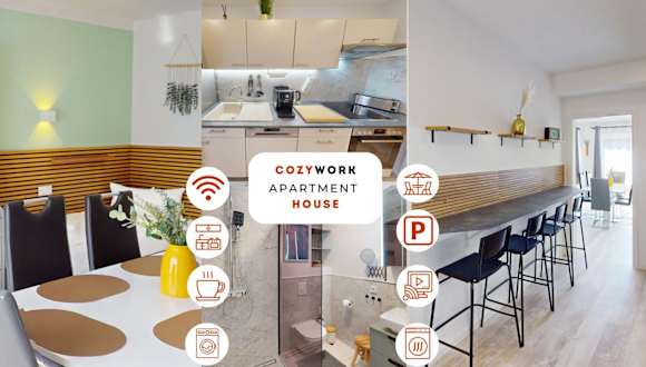 Das CozyWork Apartment House bietet Übernachtungsmöglichkeiten in einem modernen Ambiente, ausgestattet mit kostenlosem WLAN und kostenfreien Parkiermöglichkeiten.