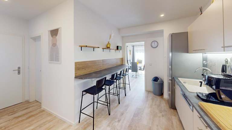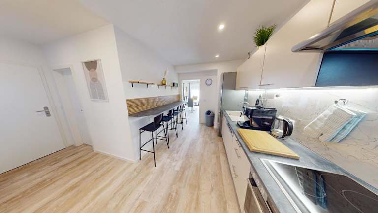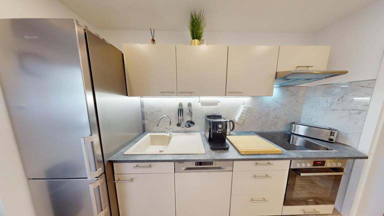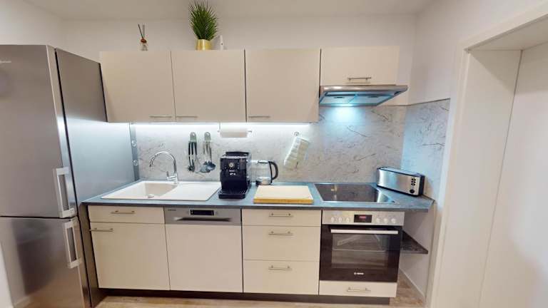 In jeder Wohneinheit gibt es eine voll ausgestattete Küche mit einem Esstisch sowie einer Kaffeemaschine und einem Wasserkocher. Die Küchen sind mit einem Kühlschrank, Geschirrspüler und Ofen ausgestattet, wodurch eine selbständige Verpflegung möglich ist.