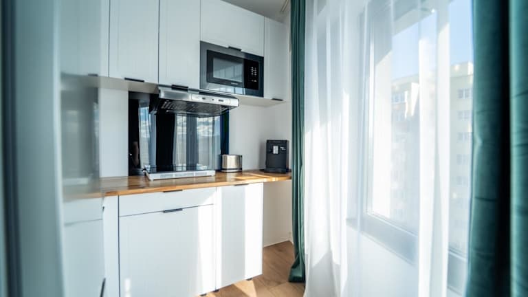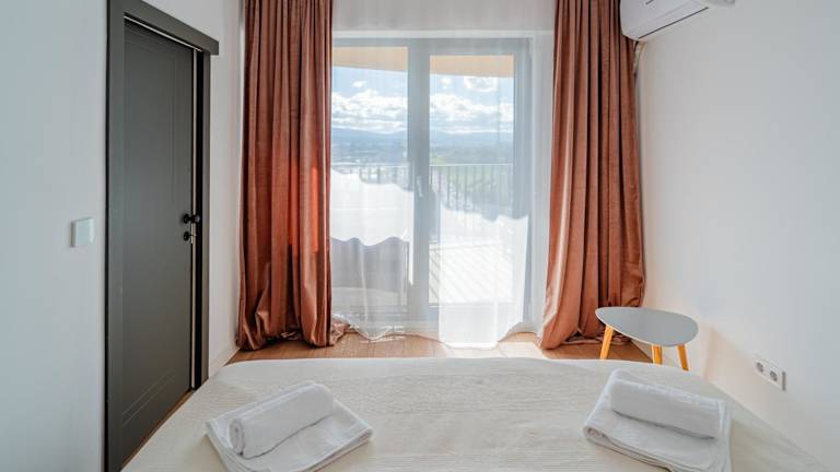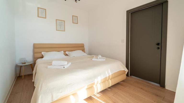 Die Ferienwohnung verfügt über ein Schlafzimmer und ein Wohnzimmer, sowie eine voll ausgestattete Küche mit Kühlschrank und Kaffeemaschine. Zum Badezimmer gehören eine Dusche und kostenlose Pflegeprodukte. Die Unterkunft bietet zudem Klimaanlage und kostenloses WLAN. Eine Terrasse und ein Balkon sind ebenfalls vorhanden. Die privaten Parkmöglichkeiten sind kostenfrei.
